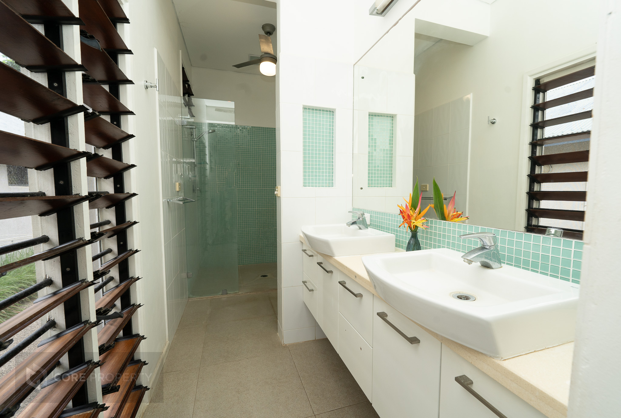 The main residence has 4 bedrooms, a study, 3 bathrooms and a mezzanine loft. The master bedroom has water views with a large walk in wardrobe and ensuite bathroom. All bedrooms have floor to ceiling built in wardrobes. The guest room is spacious and has an ensuite bathroom.